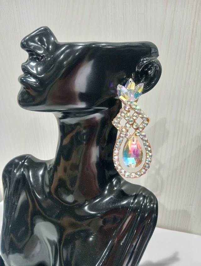 エレガントに輝く特別なイヤリング 繊細なデザインと上品な輝きが、動きに合わせて優雅に煌めきます。 ワンランク上のステージへ!貴方の魅力をさらに引き出す一品です。 ■ サイズ(平置き) 縦:6.0㎝ 横:4.2㎝ ■ 素材/製造国 ・素材には高品質なラインストーン、オーロラクリスタルを使用し美しい輝きを実現しています。 ・製造国は日本です。 ■ デザイン ・滑らかな表面、軽量で肌を傷つけません。 ・オリジナルデザイン ■ 多用途 ・パーティー、結婚式、カーニバル、その他多くの機会に適しています。 ■ お手入れ/取り扱い注意事項 ・優しい布で拭き取ることで、常に美しい状態を保てます。 ・強い衝撃を与えないで下さい。 ・水や化学薬品の使用は避けてください。 ■ 発送 ・通常、注文から3~5営業日以内に発送致します。
