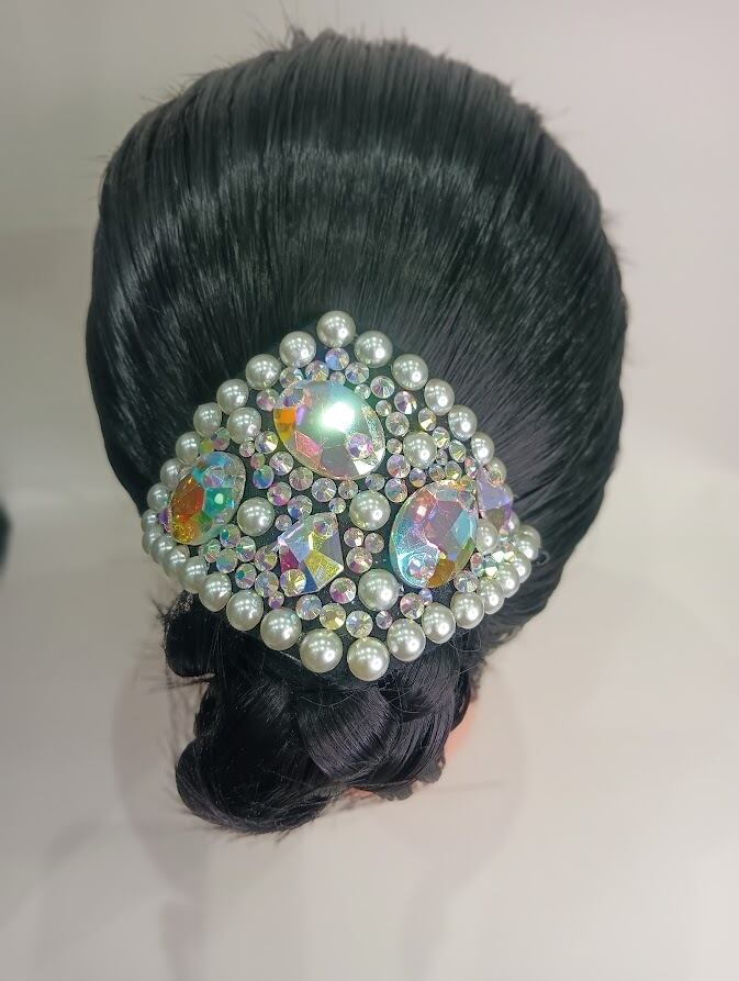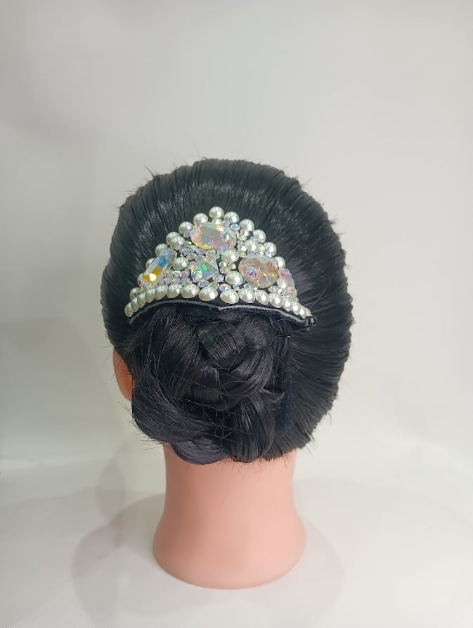 ・こちらの商品の裏にはメッシュ生地が付いております。土台のメッシュ生地をヘアピンで髪に固定してお使い下さい。