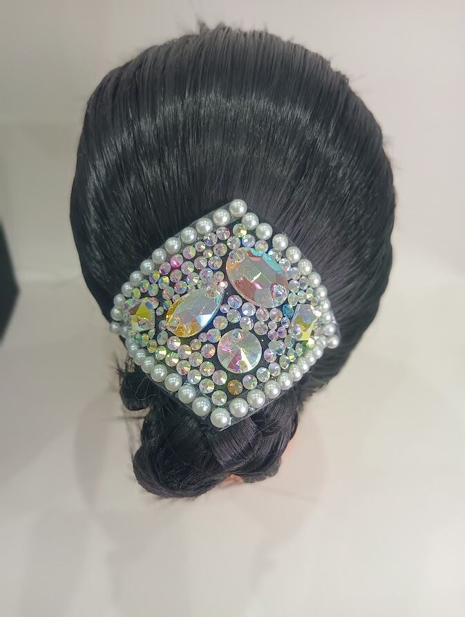 ・こちらの商品の裏にはメッシュ生地が付いております。土台のメッシュ生地をヘアピンで髪に固定してお使い下さい。
