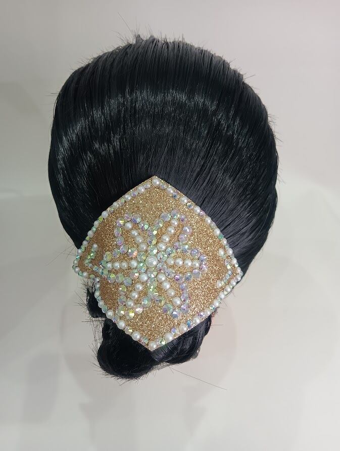 ・こちらの商品の裏にはメッシュ生地が付いております。土台のメッシュ生地をヘアピンで髪に固定してお使い下さい。
