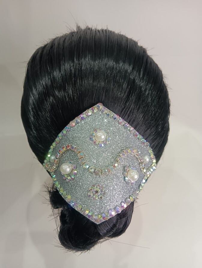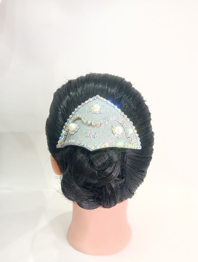 ・こちらの商品の裏にはメッシュ生地が付いております。土台のメッシュ生地をヘアピンで髪に固定してお使い下さい。