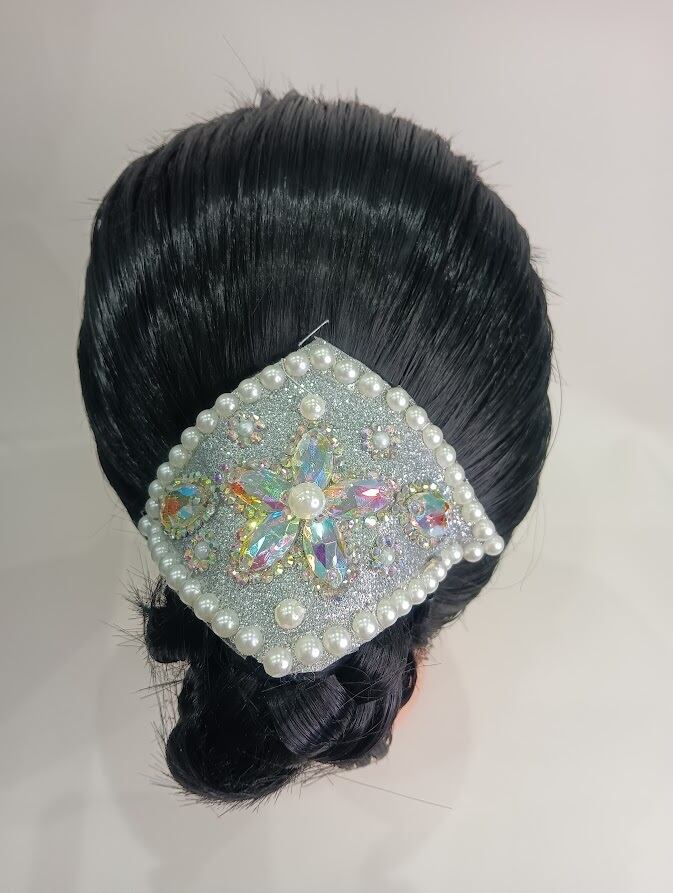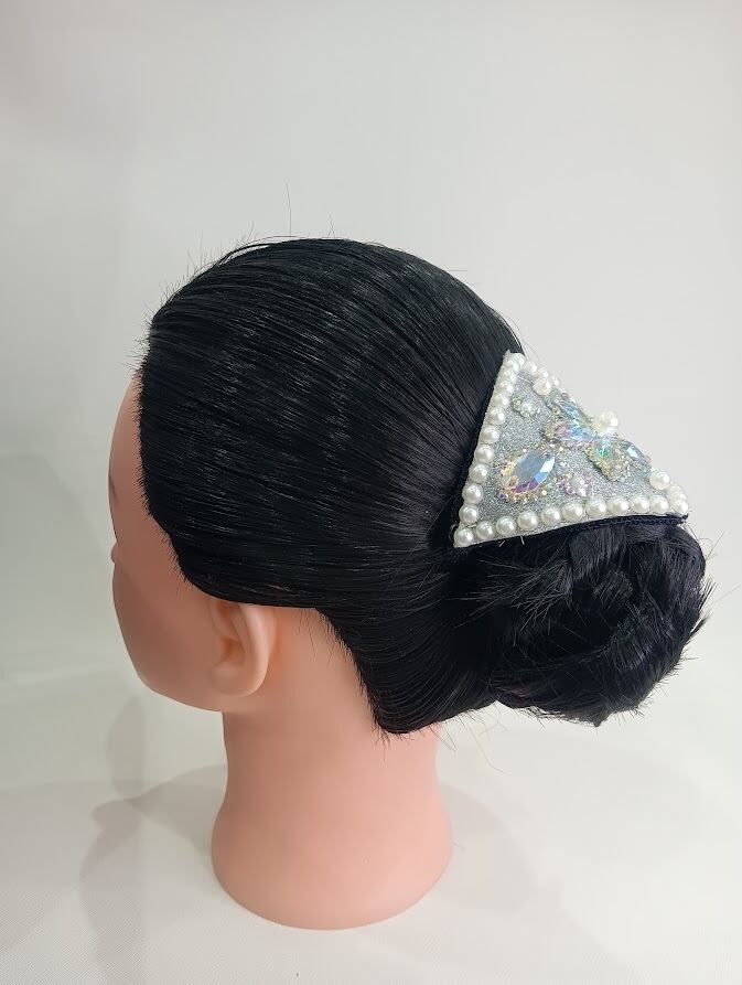 ・こちらの商品の裏にはメッシュ生地が付いております。土台のメッシュ生地をヘアピンで髪に固定してお使い下さい。