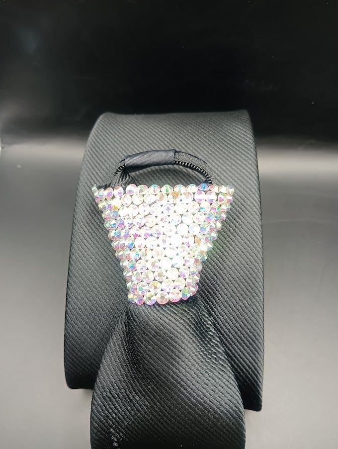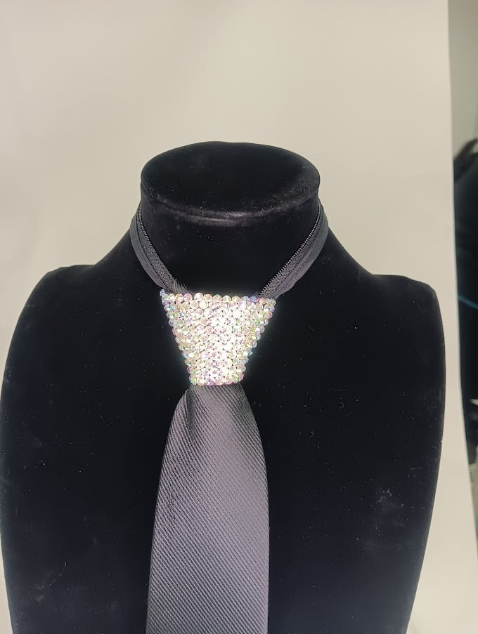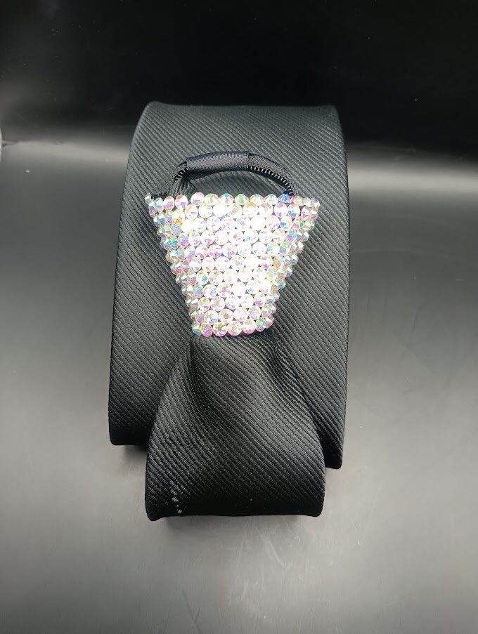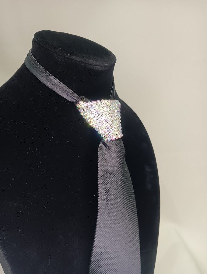 ・ネクタイの結び目をラインストーンで飾っておりますので、首元が一層華やかになります。