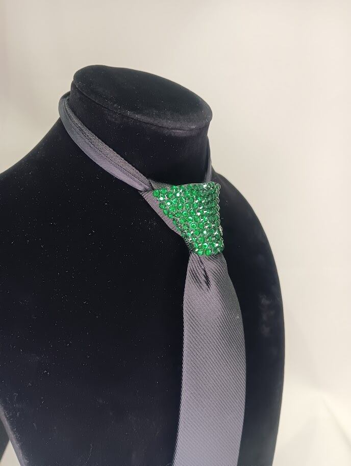 ・ネクタイの結び目をラインストーンで飾っておりますので、首元が一層華やかになります。