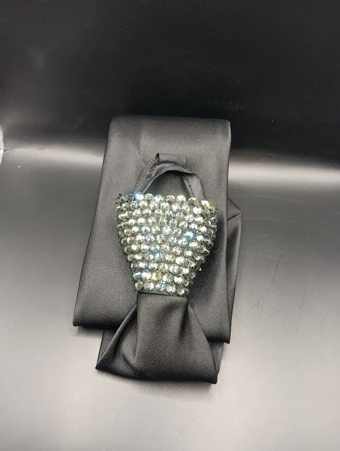 ・ネクタイの結び目をラインストーンで飾っておりますので、首元が一層華やかになります。