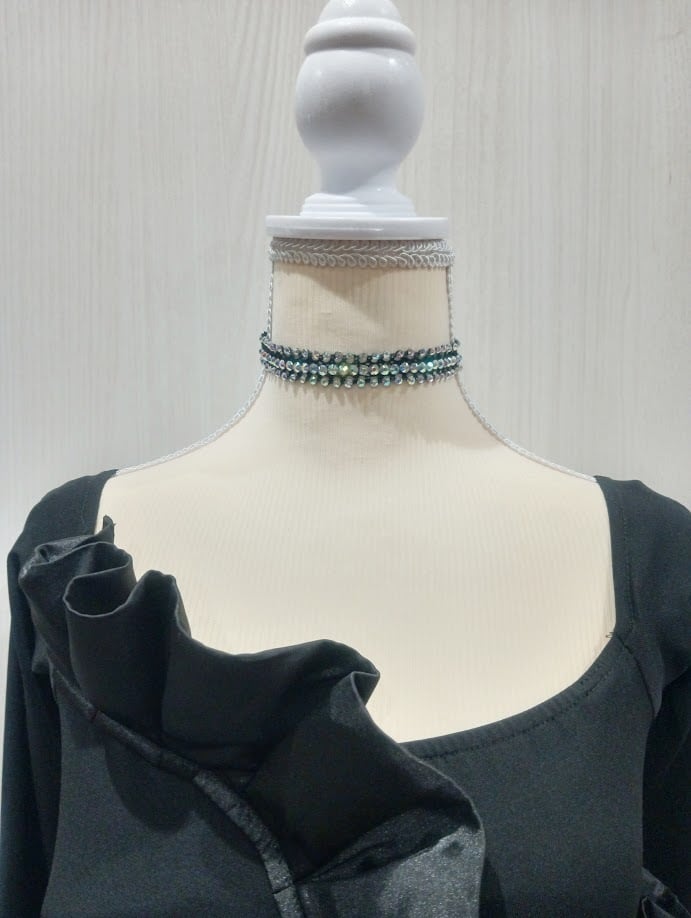 ドレススタイルやダンスシーンのアクセントにぴったりな、上品で軽やかな印象のチョーカーです。