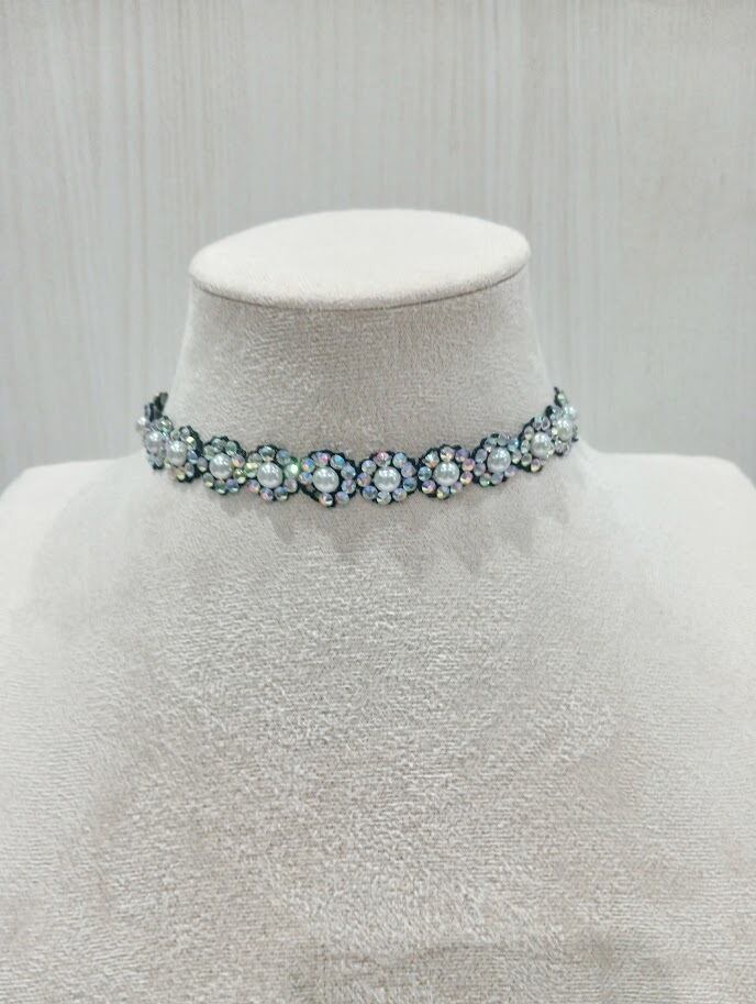 レースチョーカー(ラインストーン付き)社交ダンスやパーティにおすすめ