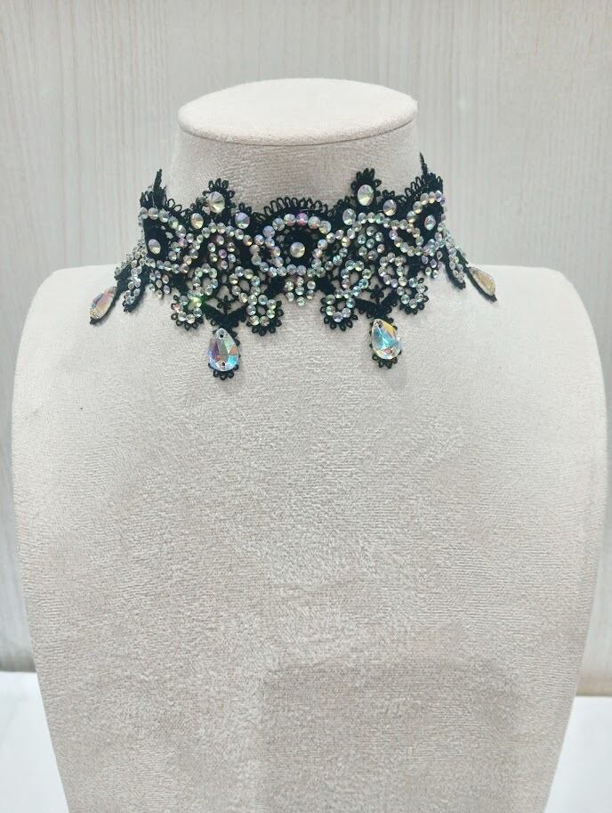 レースチョーカー(ラインストーン付き)社交ダンスやパーティにおすすめ