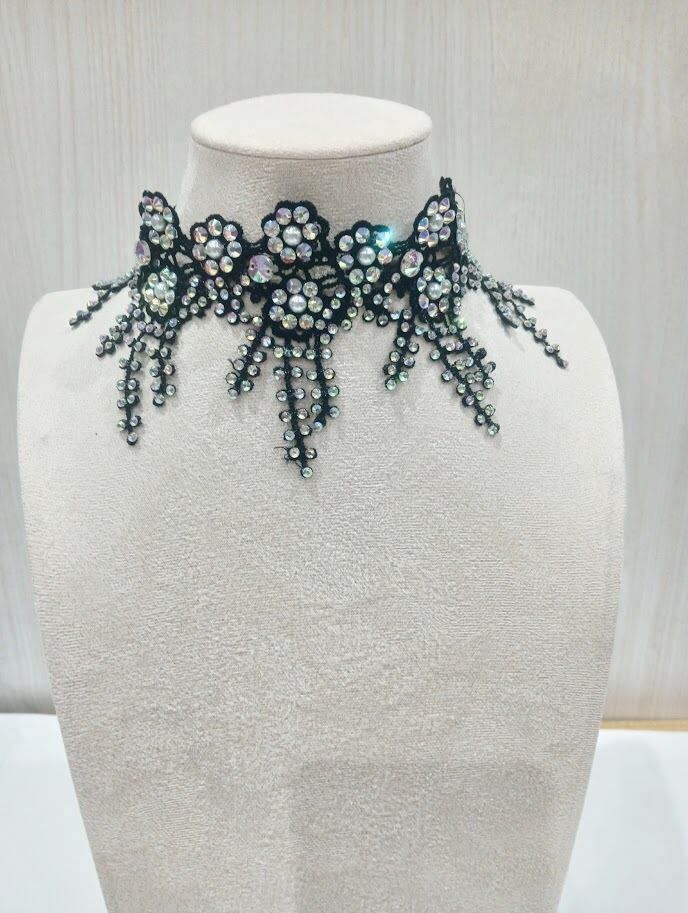 レースチョーカー(ラインストーン付き)社交ダンスやパーティにおすすめ