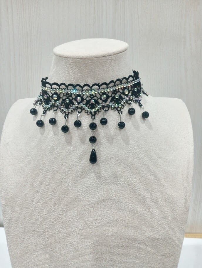 レースチョーカー(ラインストーン付き)社交ダンスやパーティにおすすめ