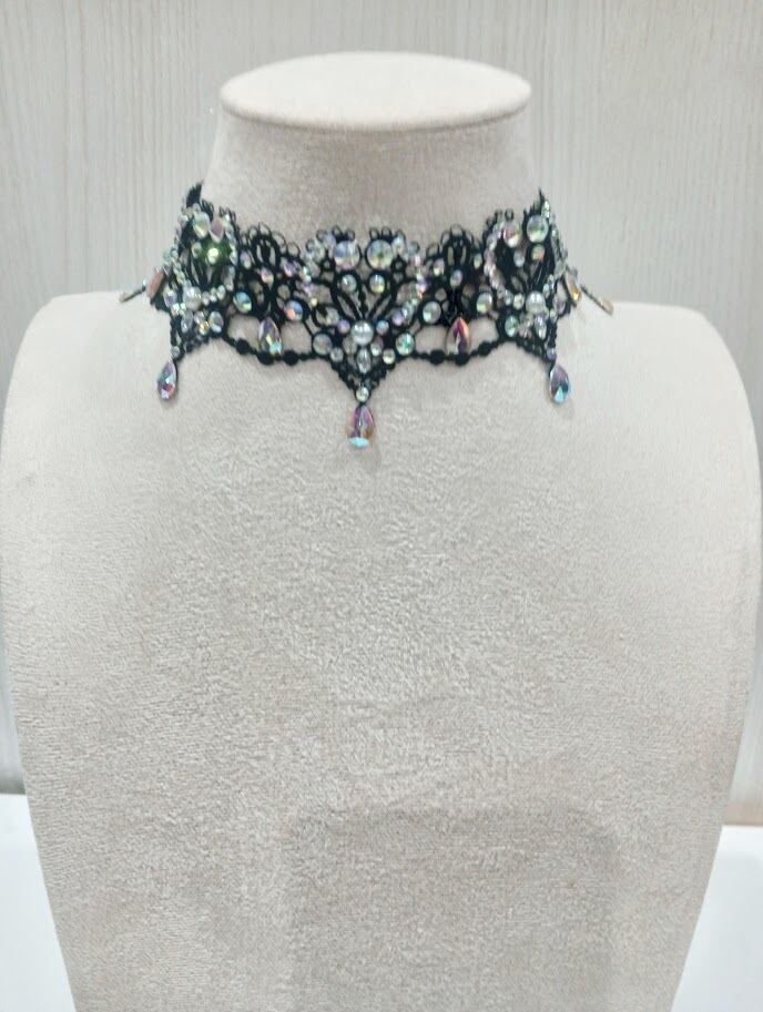 レースチョーカー(ラインストーン付き)社交ダンスやパーティにおすすめ