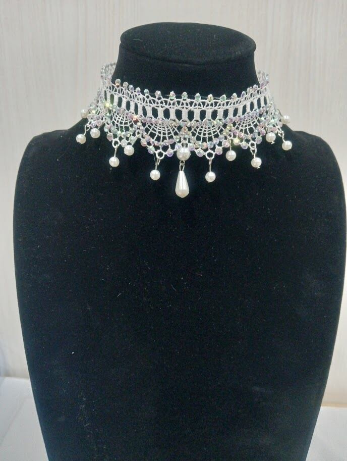 レースチョーカー(ラインストーン付き)社交ダンスやパーティにおすすめ