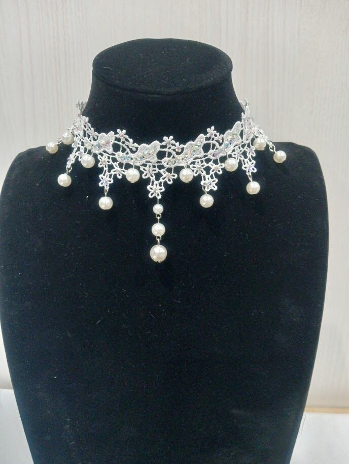 華やかでエレガントな印象を演出する、社交ダンスやパーティーに最適なレースチョーカーです。