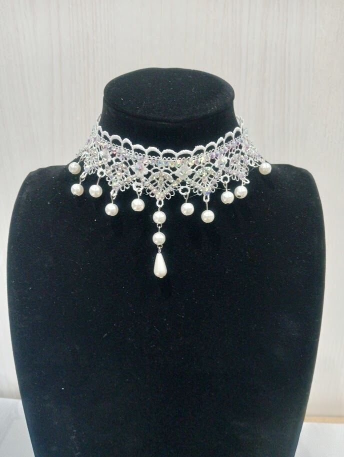 華やかでエレガントな印象を演出する、社交ダンスやパーティーに最適なレースチョーカーです。