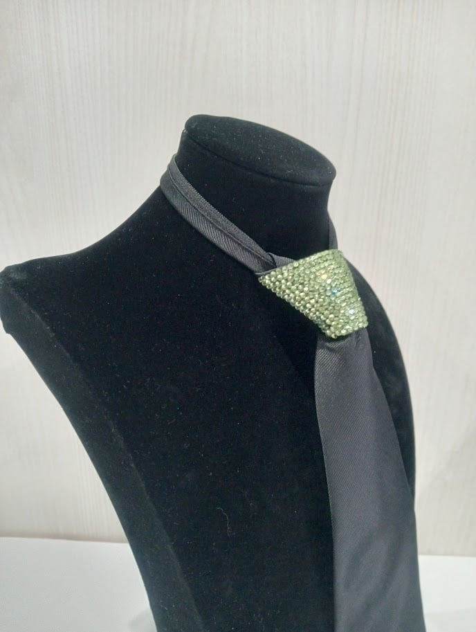 ・ネクタイの結び目をラインストーンで飾っておりますので、首元が一層華やかになります。